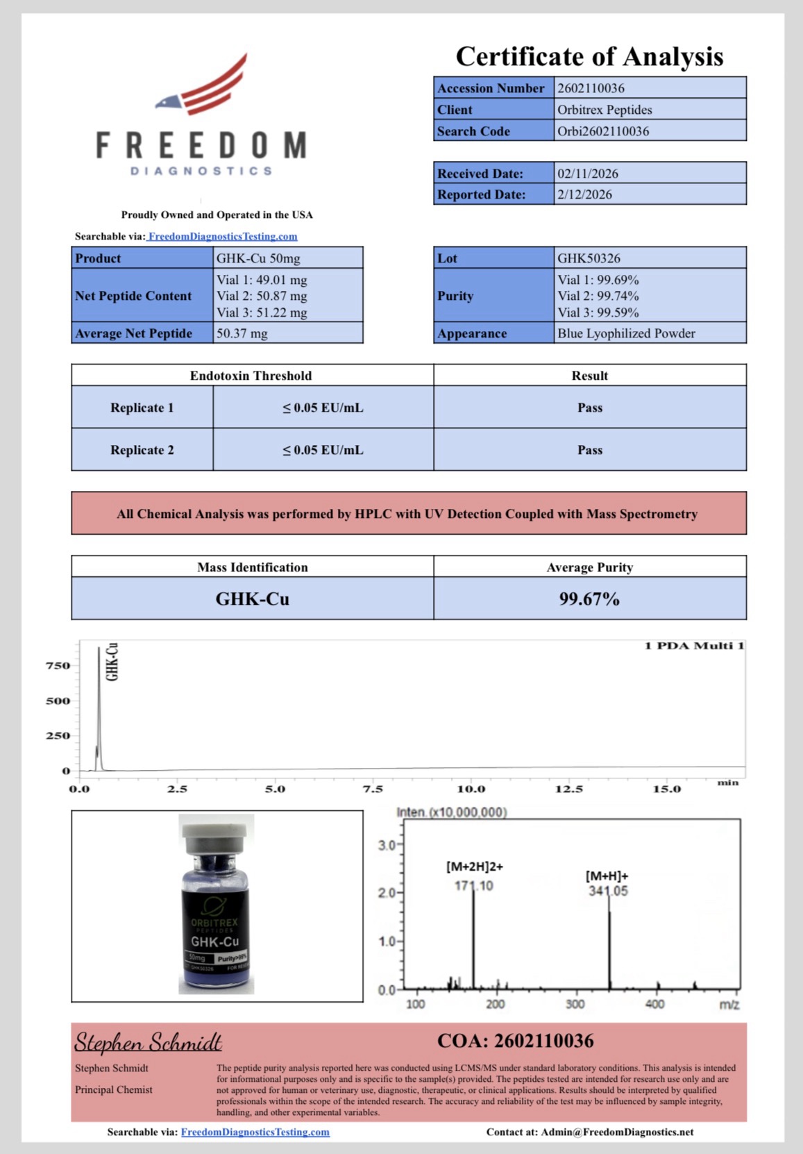 • Verified purity testing